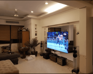 Epson TH- W5800, Maranzt SR 5015 and Milan Motorized 110″ television installed at Trump Tower Mumbai.
